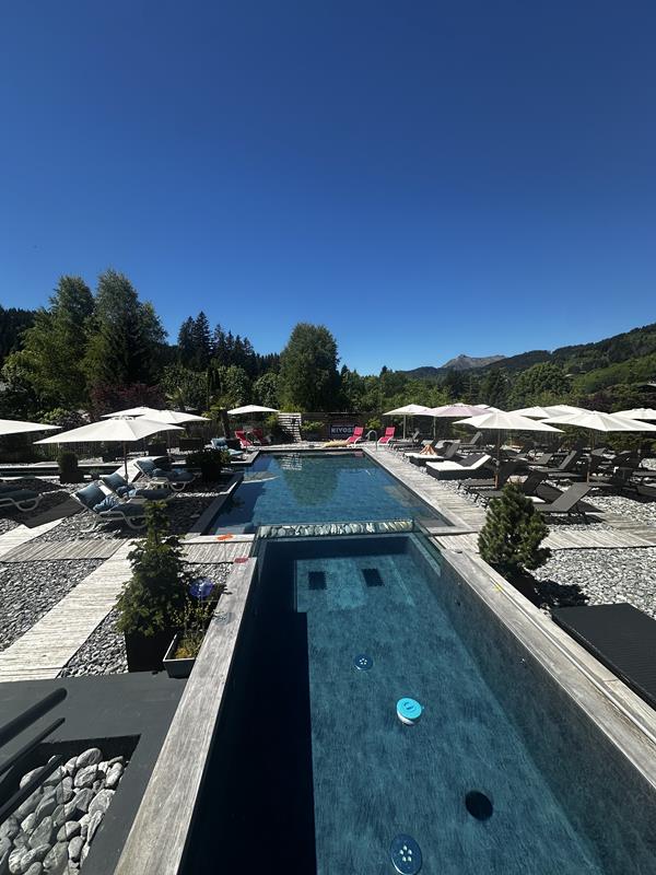 Véritable lieu de rendez-vous estival aux Gets, La Piscine réunit aussi bien les clients de l'hôtel que les résidents en quête de bien-être. La promesse est simple et irrésistible : se ressourcer, se rafraîchir et profiter d'un solarium offrant l'une des plus belles vues sur Les Gets.