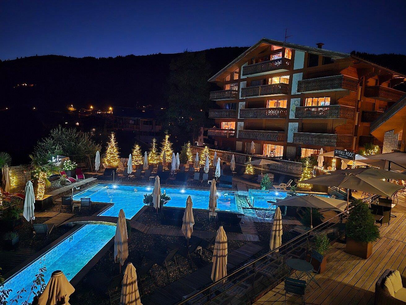 Une piscine extérieure face aux montagnessur la terrasse de l'hôtel